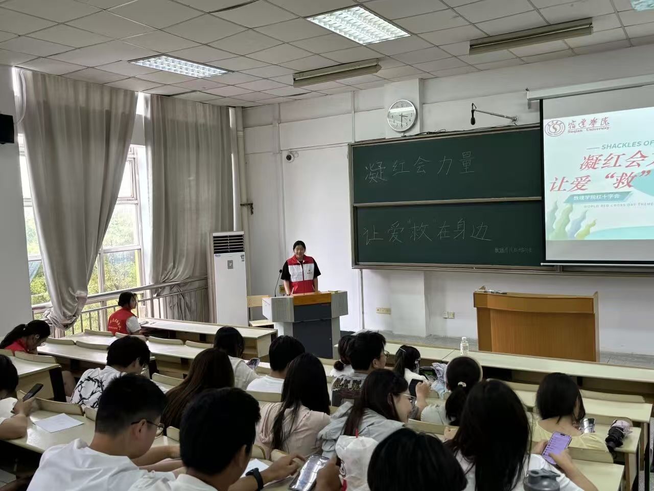 为践行人道理念、博爱精神和奉献精神,2025年6月28日数理学院红十字会在宿迁学院教学楼开展博爱青春志愿服务,以紧急救援为中心,积极开展活动,传播 “人道、博爱、奉献” 精神,共建和谐安全的美好社会。