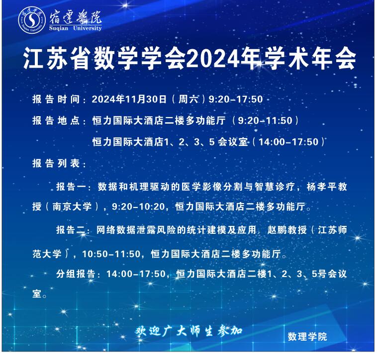 报告人简介:赵鹏,江苏师范大学二级教授、副校长。主要从事可靠性统计和网络可靠性等领域的研究工作。先后入选基金委国家优青项目、杰青项目。担任期刊Commun. Stat.副主编(AE)、《应用概率统计》《数理统计与管理》编委。曾获江苏省“双创人才”、江苏省数学成就奖、江苏省教学成果一等奖(第一完成人)等。担任中国现场统计研究会大数据统计分会副理事长,全国工业统计教学研究会青年统计学家协会副会长、中国数学会概率统计分会常务理事等。