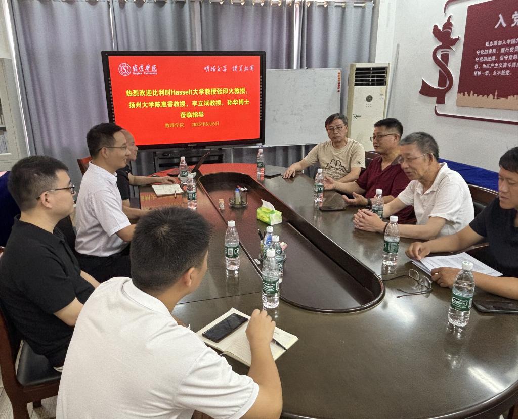 8月6日上午,比利时哈瑟尔特大学(Hasselt University)张印火教授、扬州大学陈惠香教授、李立斌教授、孙华博士应邀莅临数理学院讲学交流,围绕数学科研人才培养、引进及团队建设等主题开展研讨。本次活动由数理学院副院长(主持工作)李金宝主持,学院代数与编码成员出席此次讲座。
