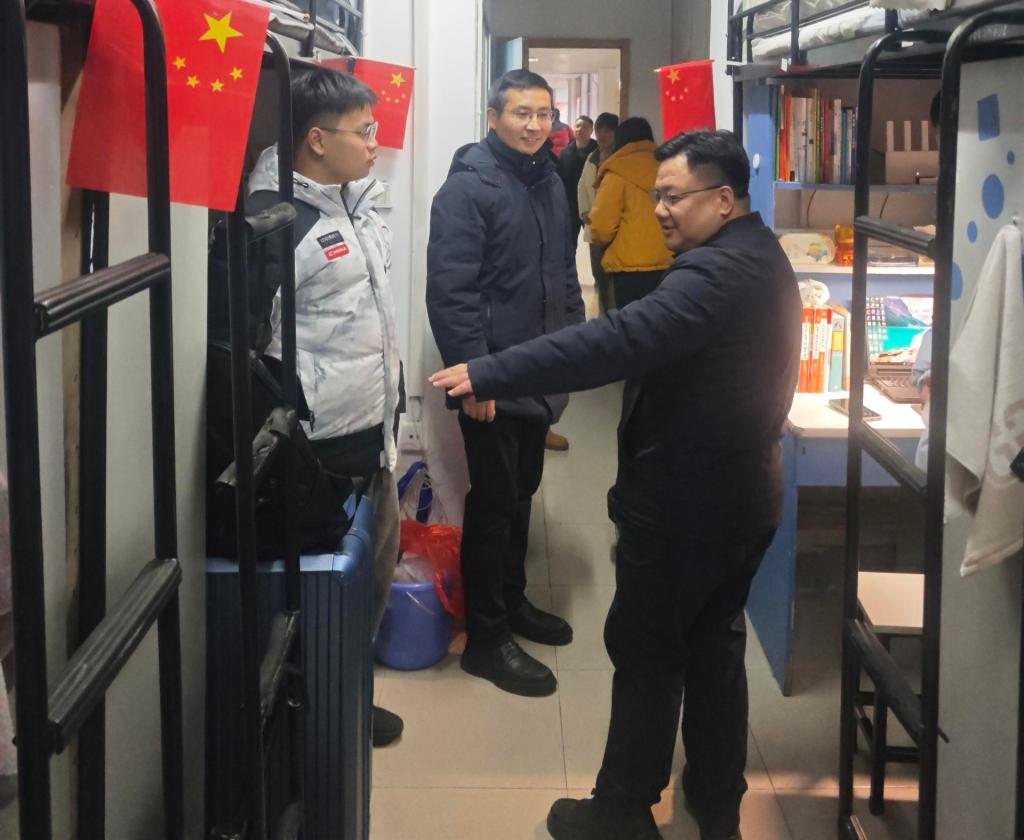 在学生宿舍检查中,学院领导深入学院宿舍楼,重点排查是否存在堵塞占用安全出口、楼梯间堆放杂物、违规使用大功率电器、电动自行车电池进楼充电等消防安全隐患。检查组与学生面对面交流,叮嘱同学们增强消防安全意识,严格遵守宿舍管理规定,共同维护安全和谐的住宿环境。